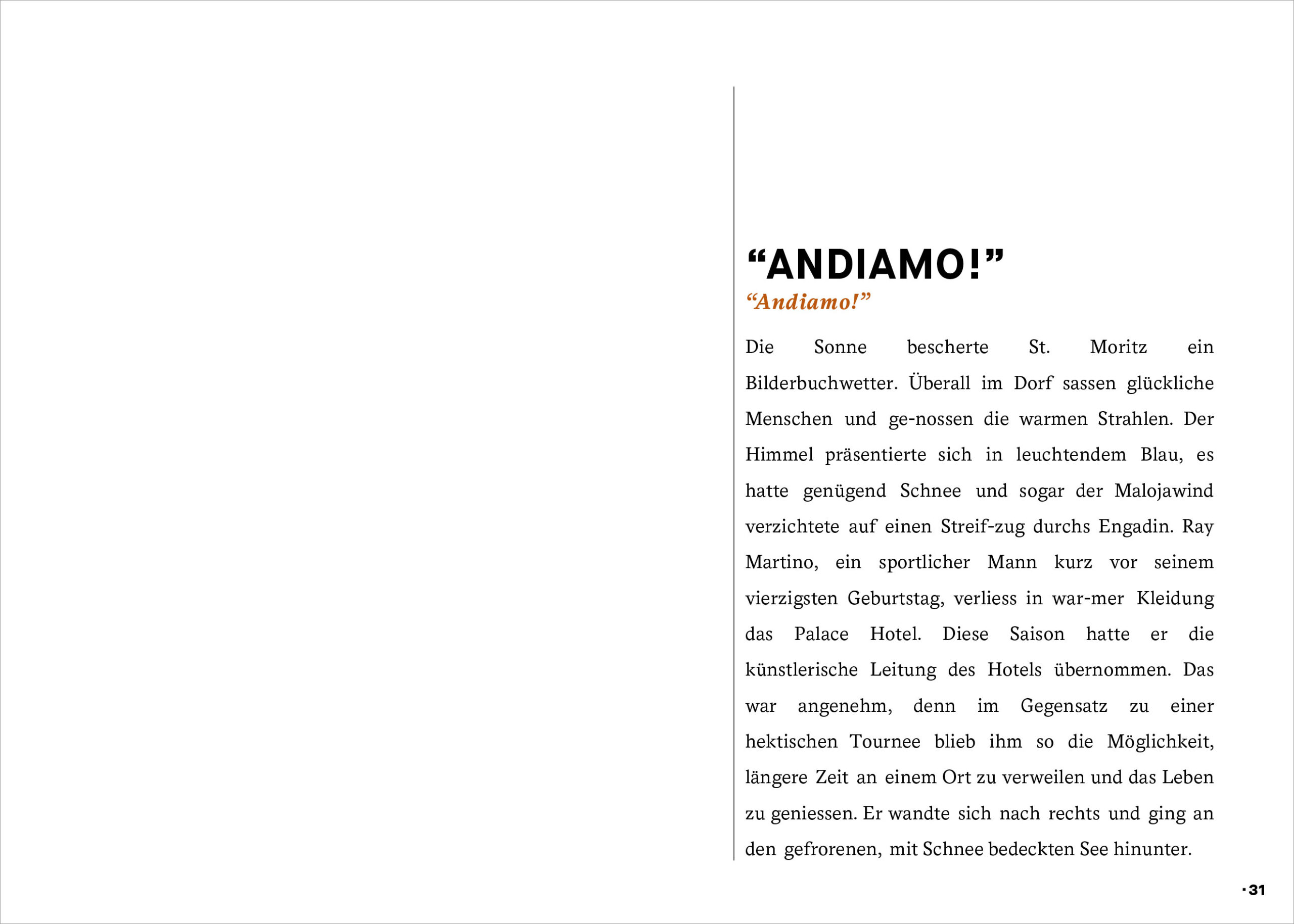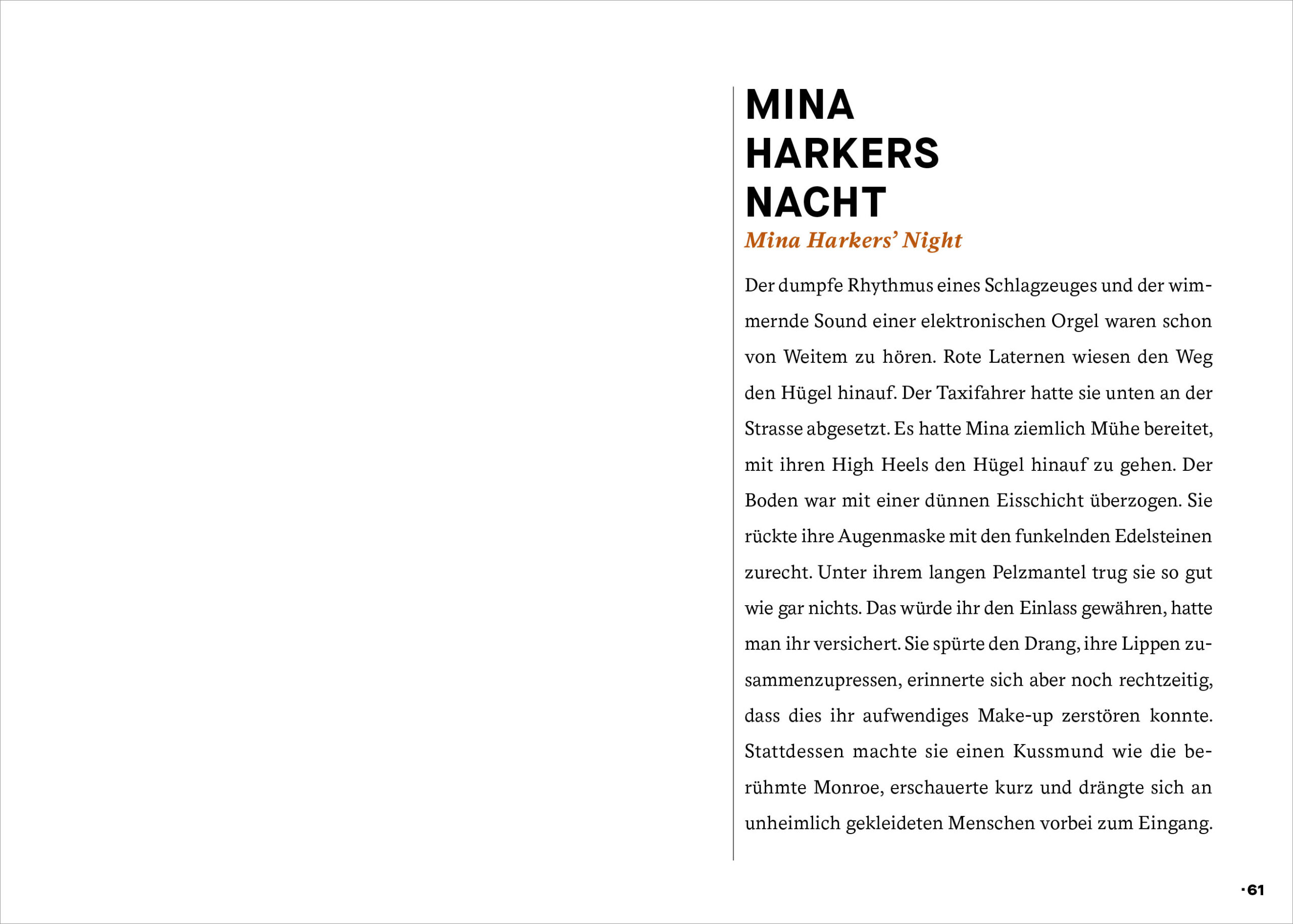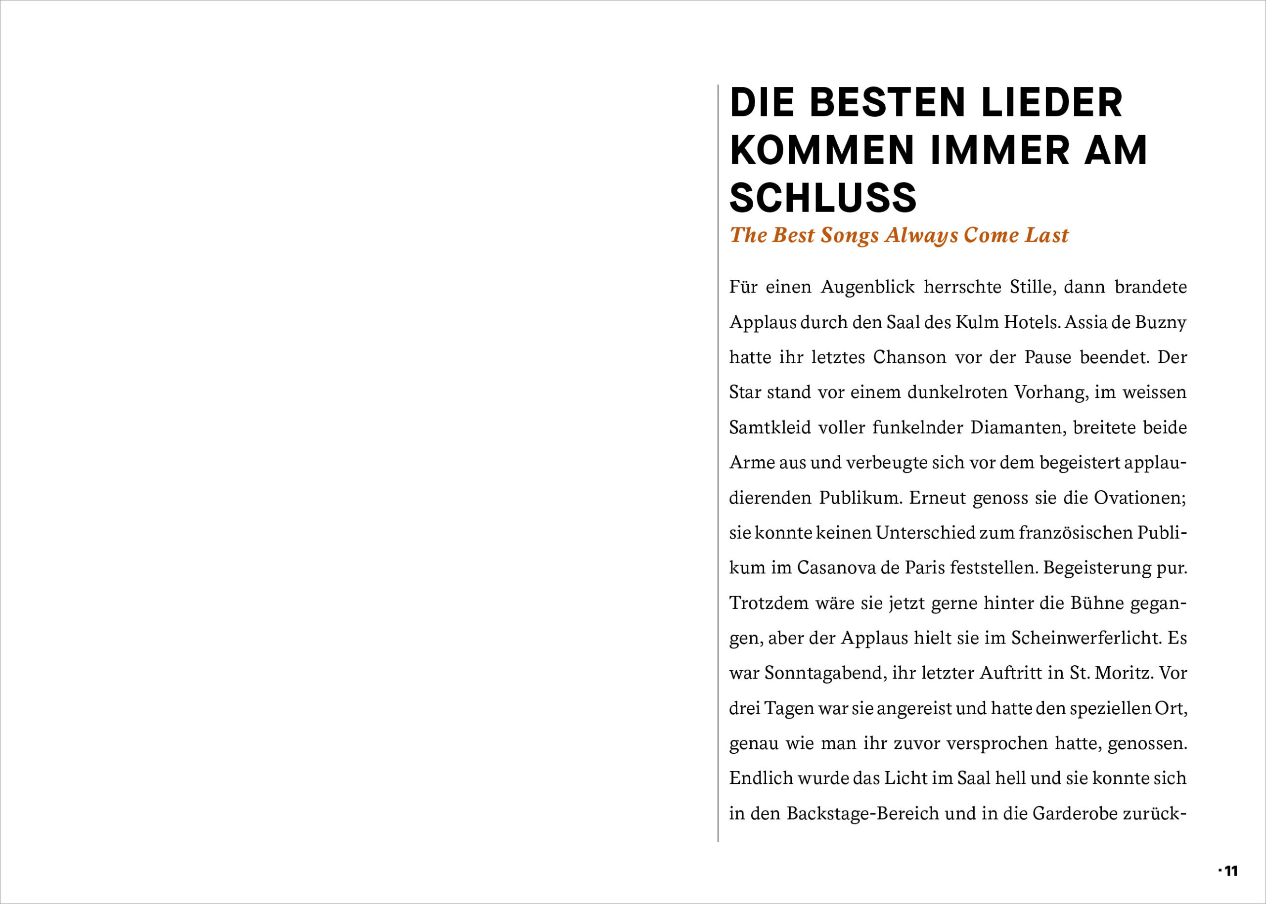 EDITORIAL EIN AUGUST MÄRCHEN DIE BESTEN LIEDER KOMMEN IMMER AM SCHLUSS WER ZAHLT, BEFIEHLT FAITES VOS JEUX MOI J’PRÉFÈRE LA MARCHE À PIED “ANDIAMO!” DIE VORSTELLUNG SEINES LEBENS MAD MILLER BENZ‘ NACHT DAVOR CHANDRAJITS RUN ERINNERUNGEN MINA HARKERS NACHT LETZTER APPLAUS FÜR GRETA